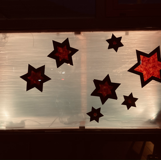 An jedem Schulmorgen im Dezember erstrahlt ein weihnachtlich geschmücktes Fenster in unserer Mensa.