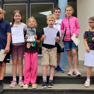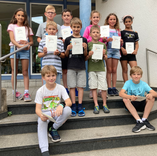 Heute fand nun die Siegerehrung statt. Für besondere Leistungen erhielten viele Kinder eine Sieger- oder Ehrenurkunde. Emilia erzielte mit 1.100 die meisten Punkte, dicht gefolgt von Emma und Mila.